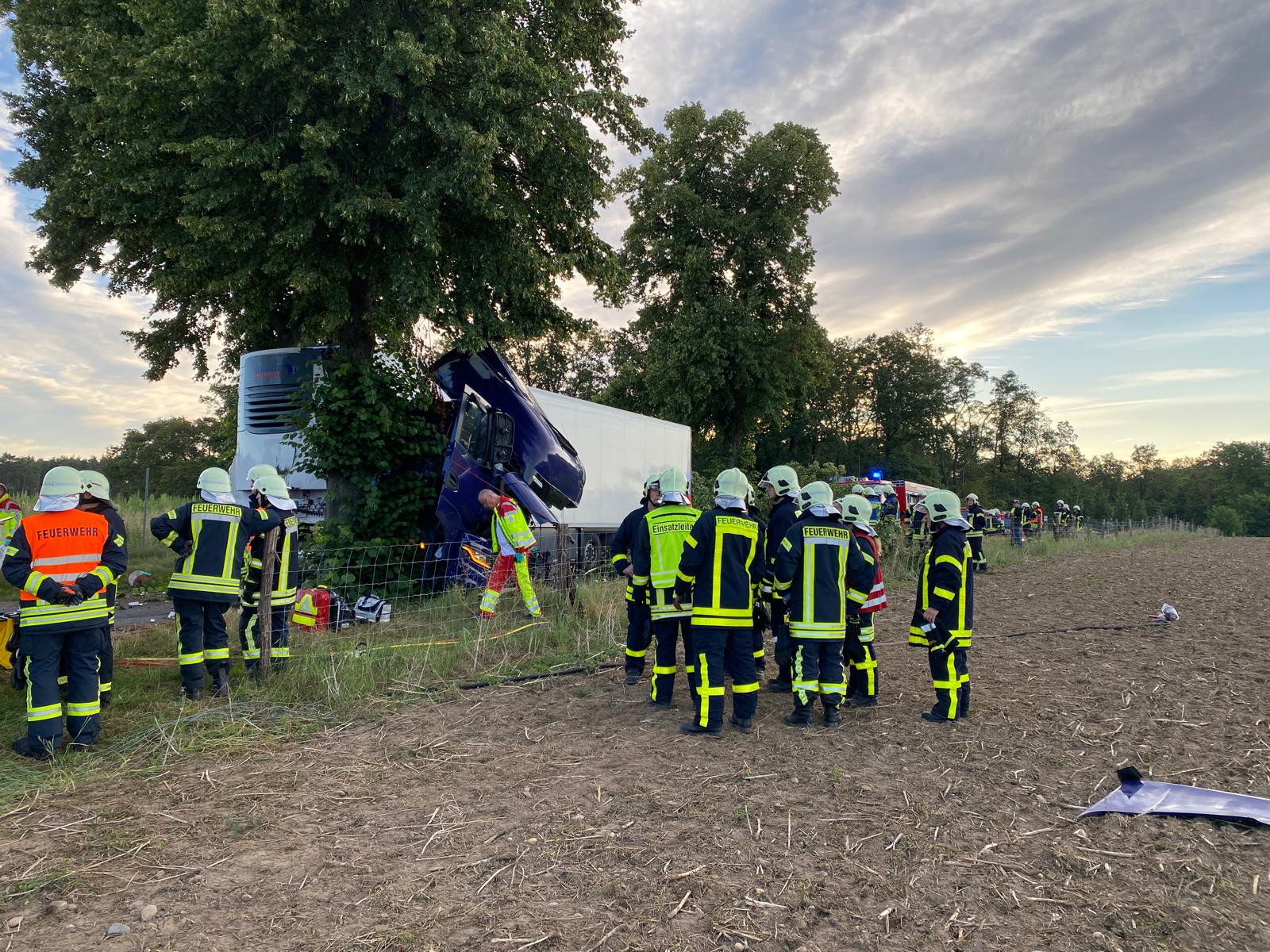Aus bisher ungeklärter Ursache kollidierte der LKW mit einem Baum. Der LKW-Fahrer wurde bei dem Unfall in seinem Fahrerhaus eingeklemmt und erlitt lebensgefährliche Verletzungen, an welchen er noch an der Unfallstelle verstarb.