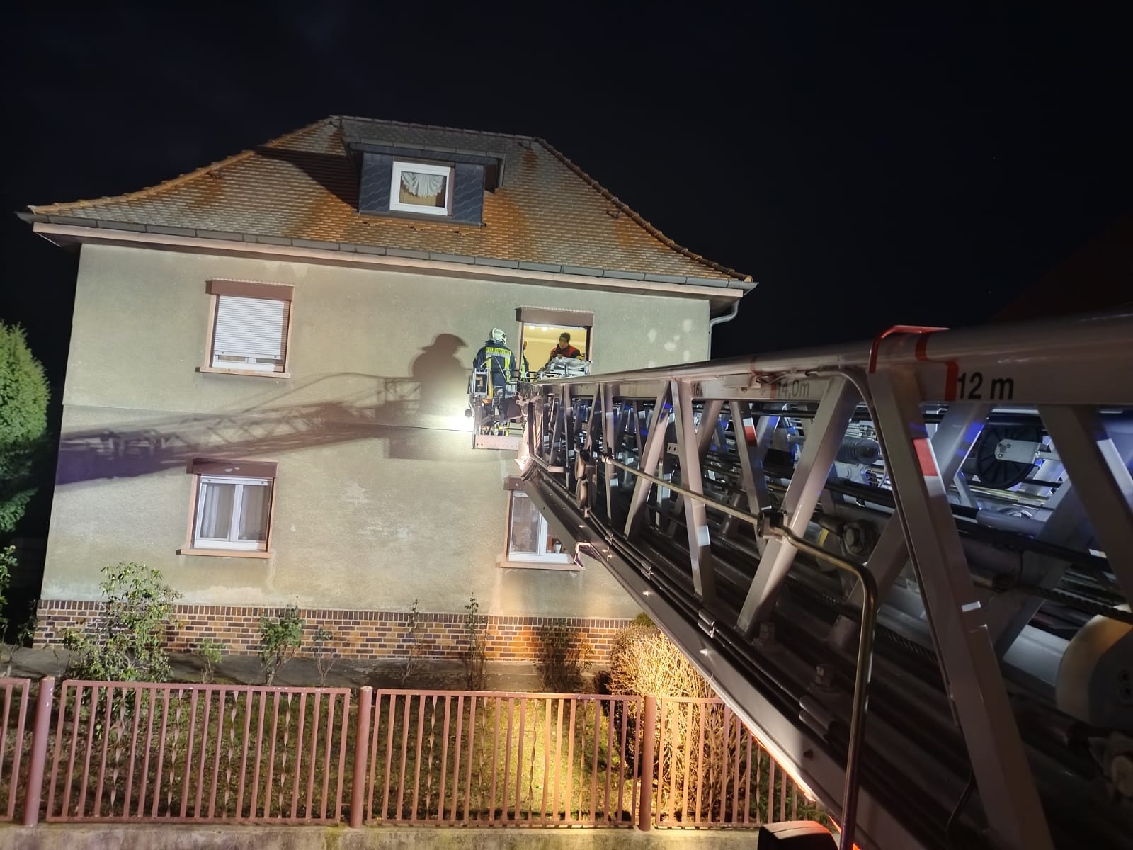 Um 01:50 Uhr wurden die Ortsfeuerwehren Groß- und Kleinraschütz/Wildenhain, Skassa und Großenhain zu einer Tragehilfe über die Drehleiter auf den Neuen Weg in Großenhain alarmiert.