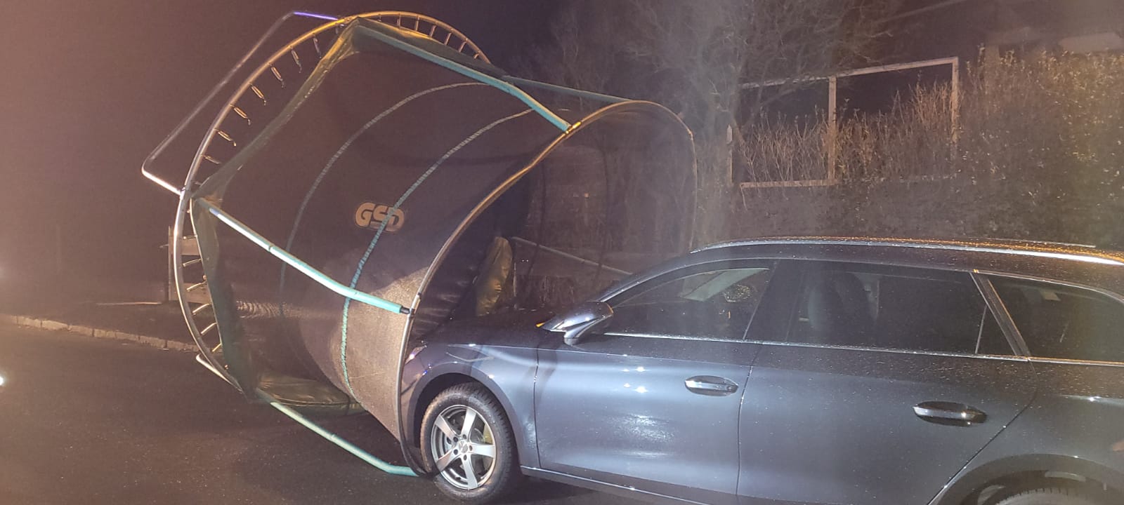 Die Ortsfeuerwehr Großenhain wurde um 0:11 Uhr zu einem herumfliegenden Trampolin alarmiert. Auf der Kupferbergstraße hatte sich ein Trampolin selbstständig gemacht und ein parkendes Auto beschädigt. Die Kameraden konnten es sichern und den Besitzer ausfindig machen. Anschließend wurde die Einsatzstelle an die Polizei übergeben.