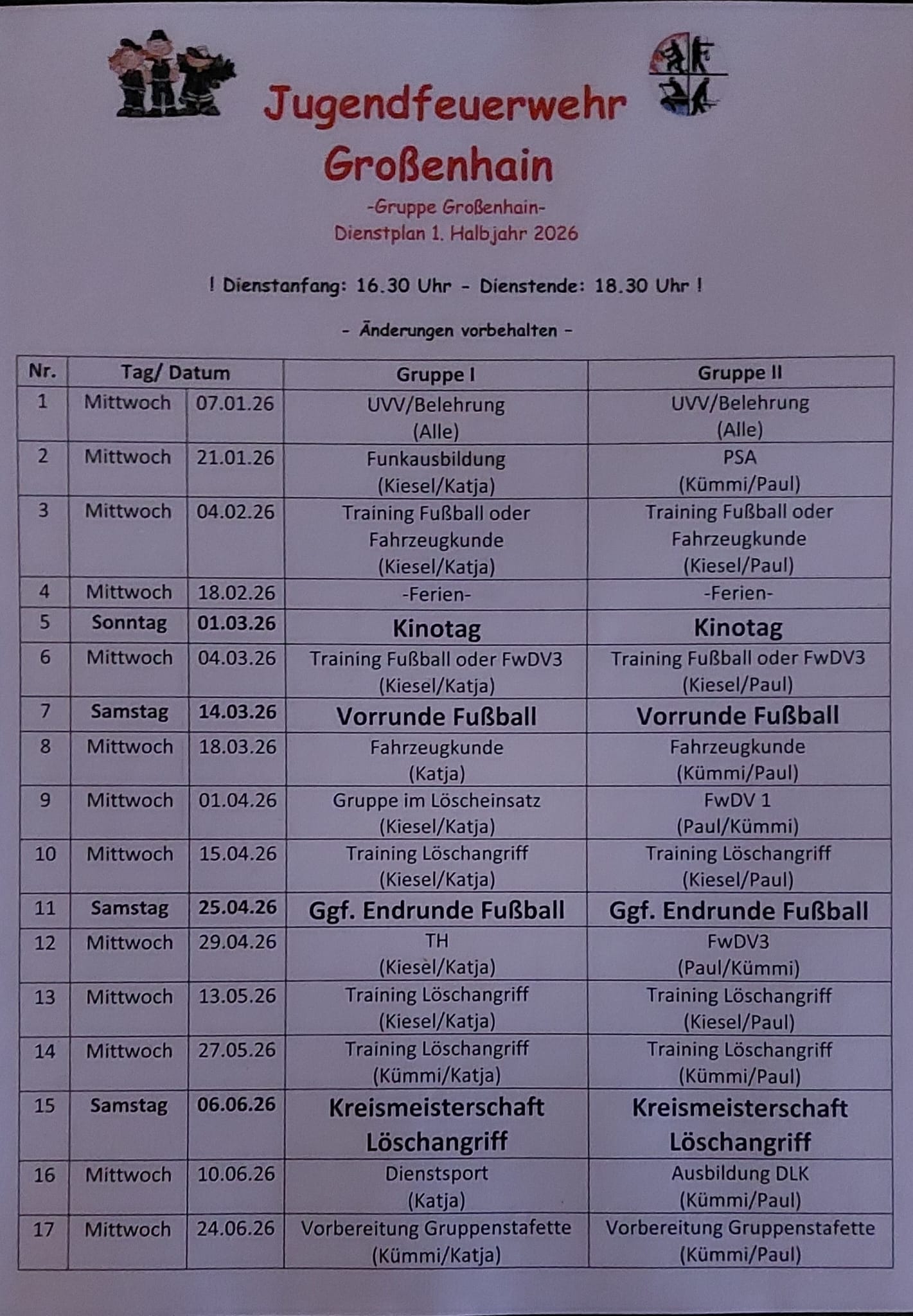 Dienstplan 2026 Jugendfeuerwehr Großenhain